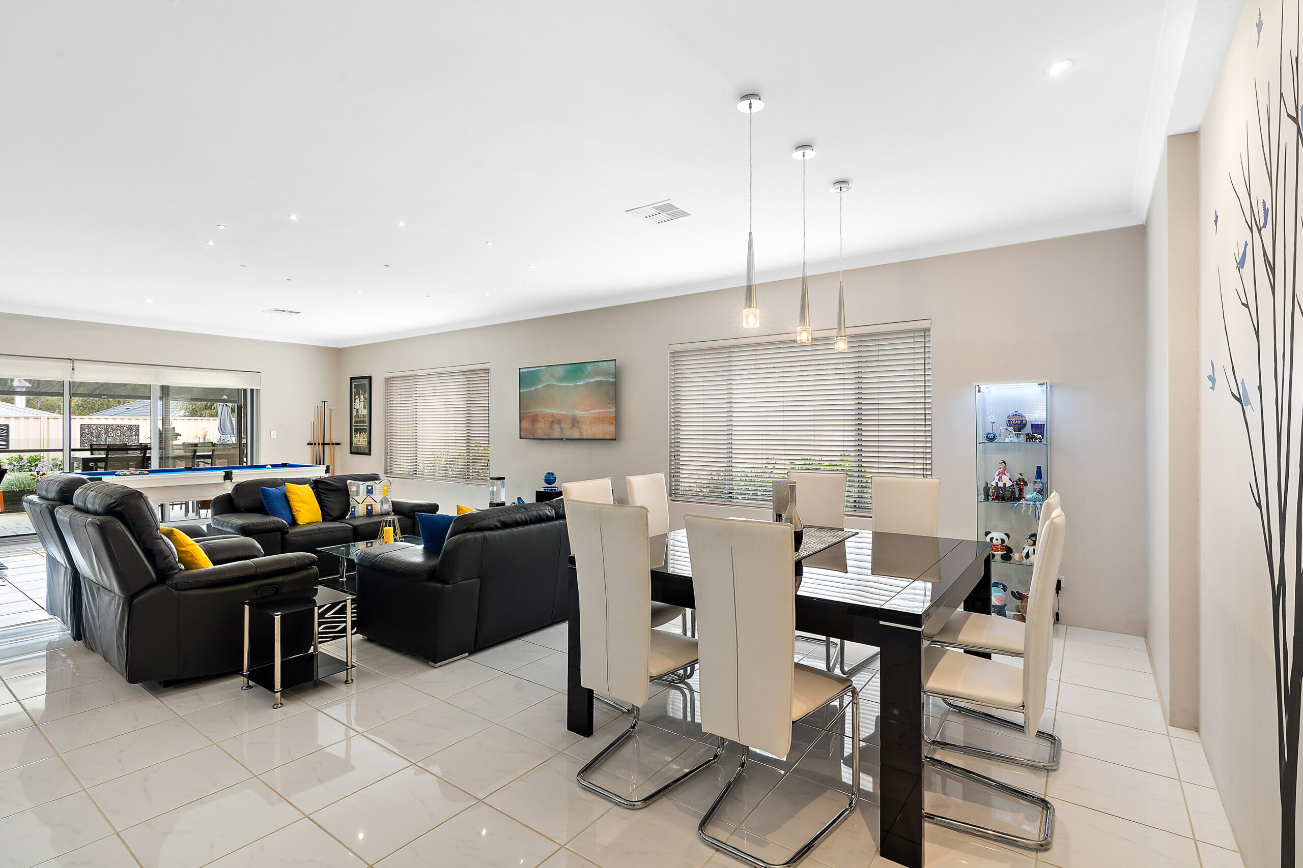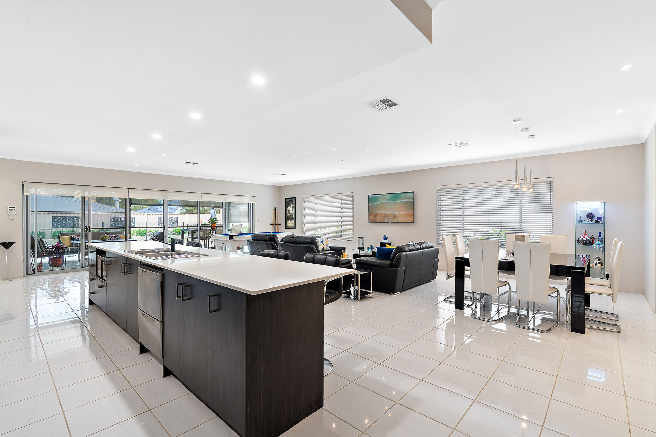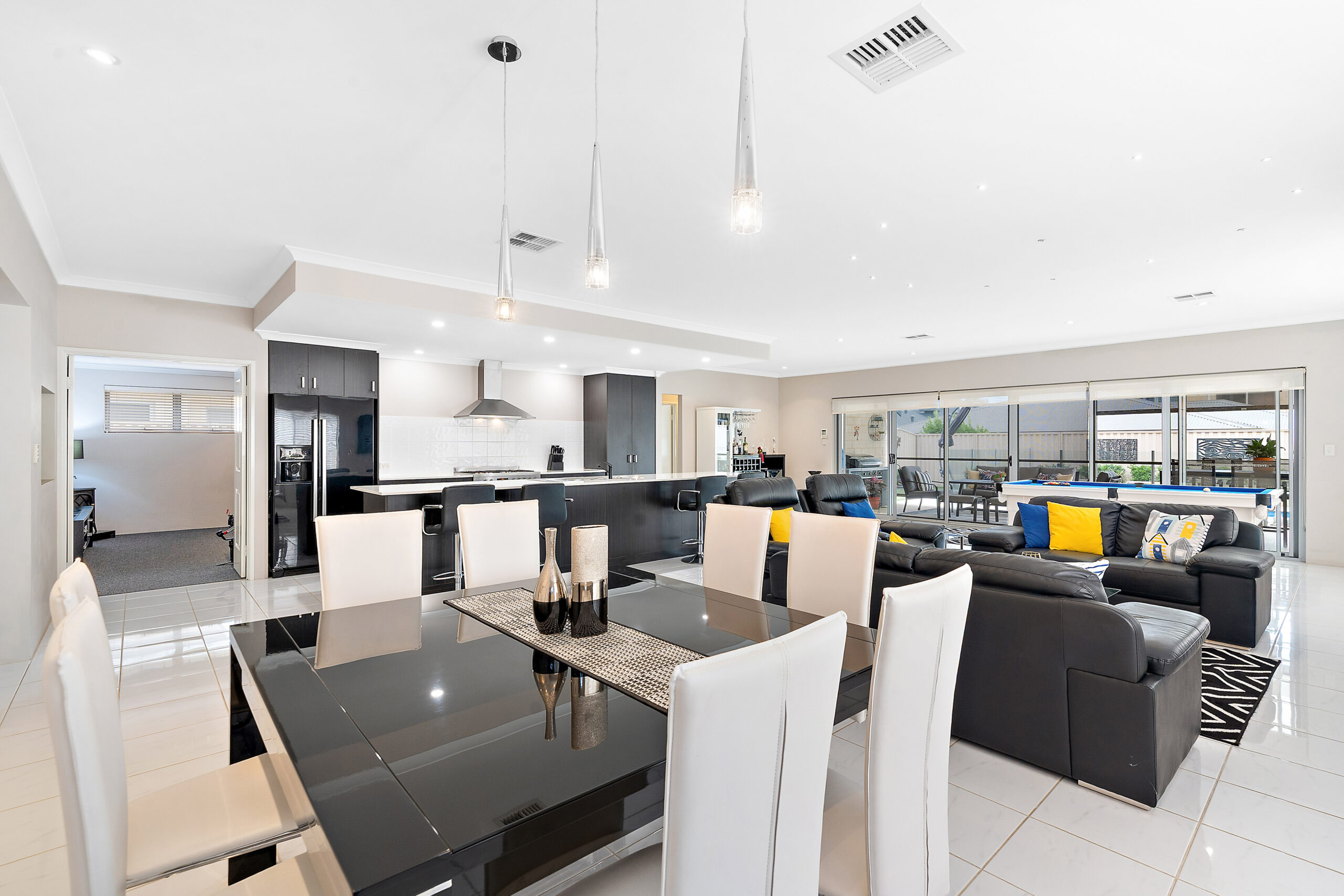 Family and dining area opening to alfresco.